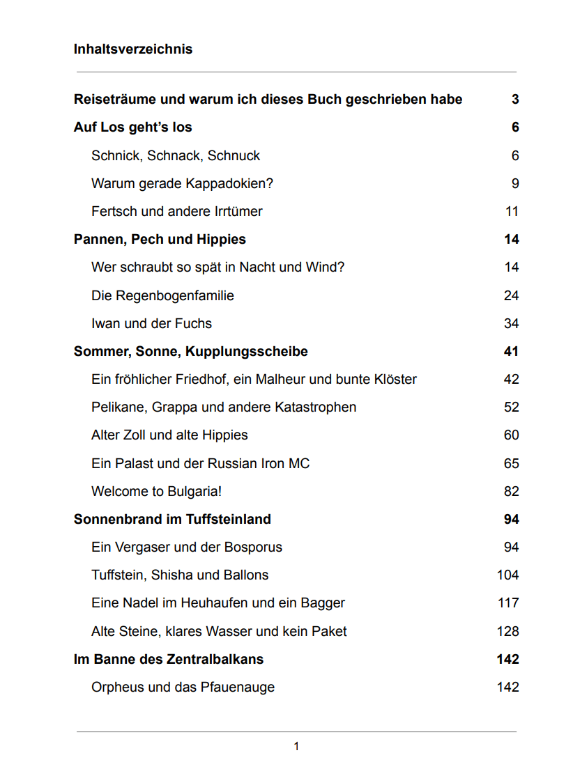 Ein Wendepunkt in seinem Leben verhalf ihm zu 10 Wochen freier Reisezeit, und er fuhr einfach los. Es ging über den Balkan bis nach Kappadokien in der Zentraltürkei, und er erlebte fremde Lebensweisen und traumhafte Landschaften hautnah.